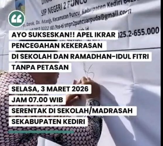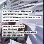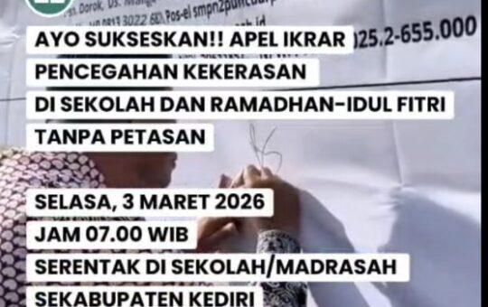 Kediri-Dalam rangka menyambut bulan suci Ramadan, seluruh sekolah melaksanakan kegiatan "Ikrar Ramadan Tanpa Petasan dan Kekerasan" sebagai wujud komitmen menciptakan...
